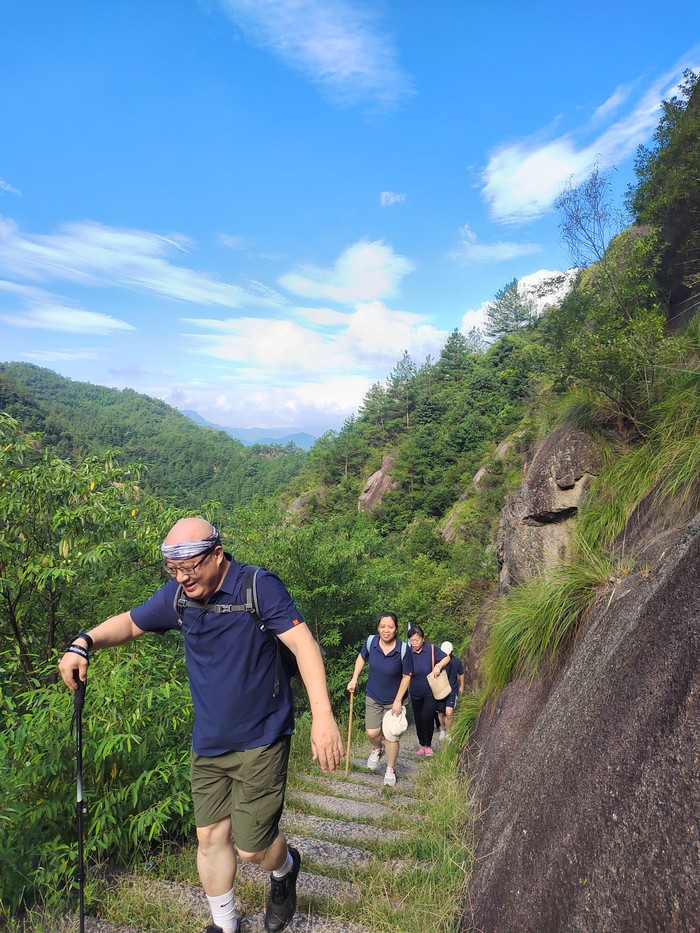一路上,風景如畫,山巒起伏,綠樹成蔭。但毅行的道路并非一帆風順,陡峭的山坡、崎嶇的小路,都給大家帶來了不小的挑戰。然而,正是在這些困難面前,團隊合作精神開始閃耀出最耀眼的光芒。面對艱險的山路,團隊成員沒有人掉隊。無論是在前方沖鋒的領隊,還是默默陪伴在后方的同事,大家都展現了無私的合作精神。有的同事主動幫助他人背負物品,有的在攀登時伸出援手,相互鼓勵,團結一心。當有同事體力不支時,旁邊的人立刻伸出援手,攙扶著他們繼續前行。一句句鼓勵的話語,如溫暖的春風,吹拂著每個人的心靈?!凹佑?,我們一起走!”“堅持就是勝利!”這些簡單而有力的話語,成為了大家前進的動力。