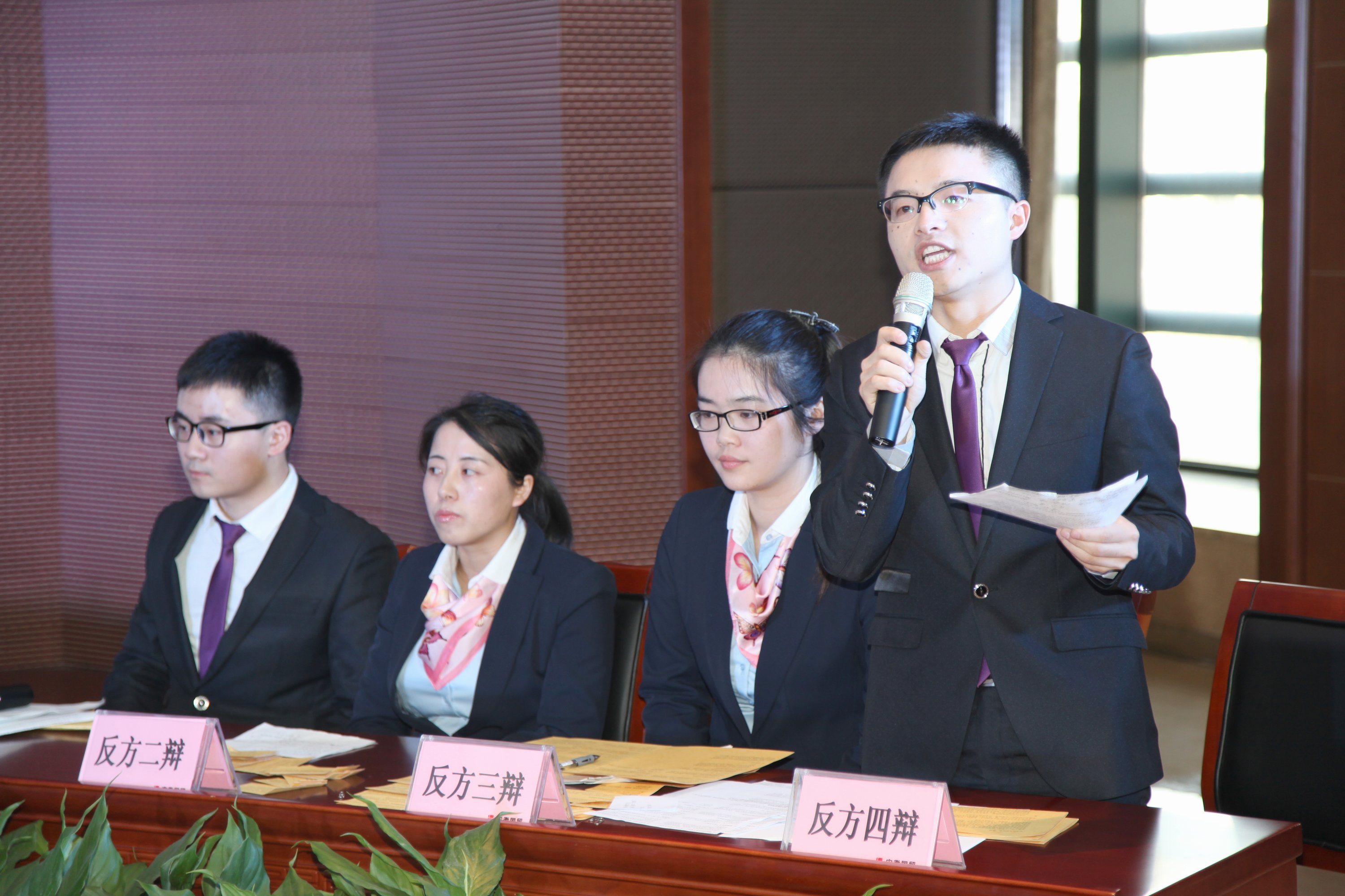 ? ? 寒冬臘月,由國貿集團團委主辦的首屆“知容杯”辯論大賽火熱開賽。公司積極響應集團號召,團委選派范有春、徐曉倩、汪雪琴、嵇博睿代表公司參賽,總經理張立傳擔任比賽評委。