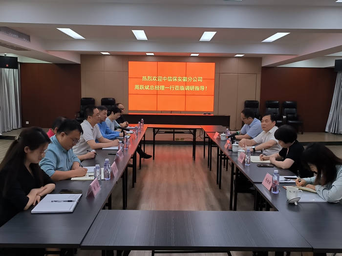 5月17日下午,中信保安徽分公司黨委書記、總經理周躍斌同志帶領信保相關人員來我司調研,何峰董事長與公司管理層熱情接待了來訪的領導并舉行了座談。